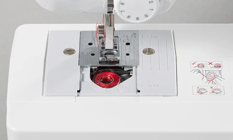 - Système de canette à plat : Pour un enfilage simplifié et un accès facile, rendant le changement de canette rapide et sans stress.