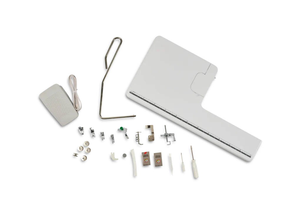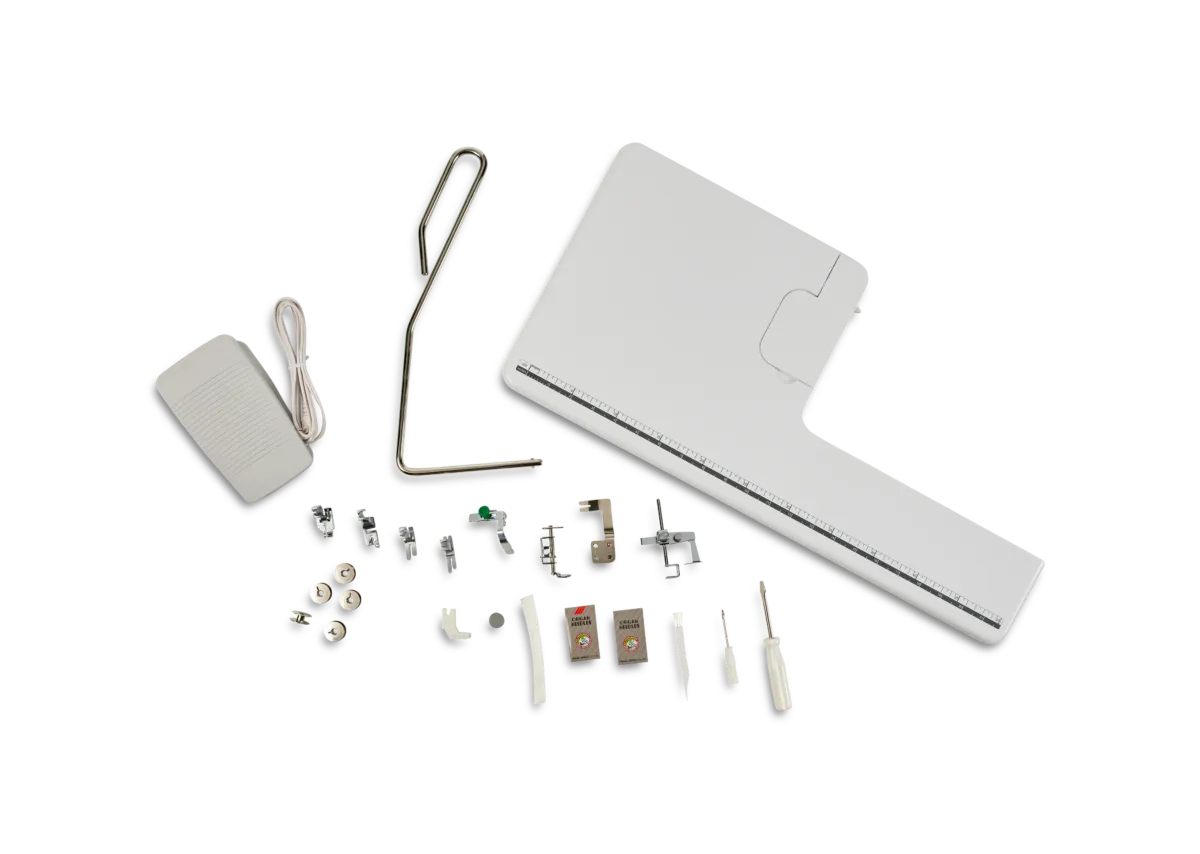 - Espace de couture généreux : Profitez d’un grand espace de travail de 145 x 220 mm pour coudre des projets de grande envergure, avec une table d’extension incluse.