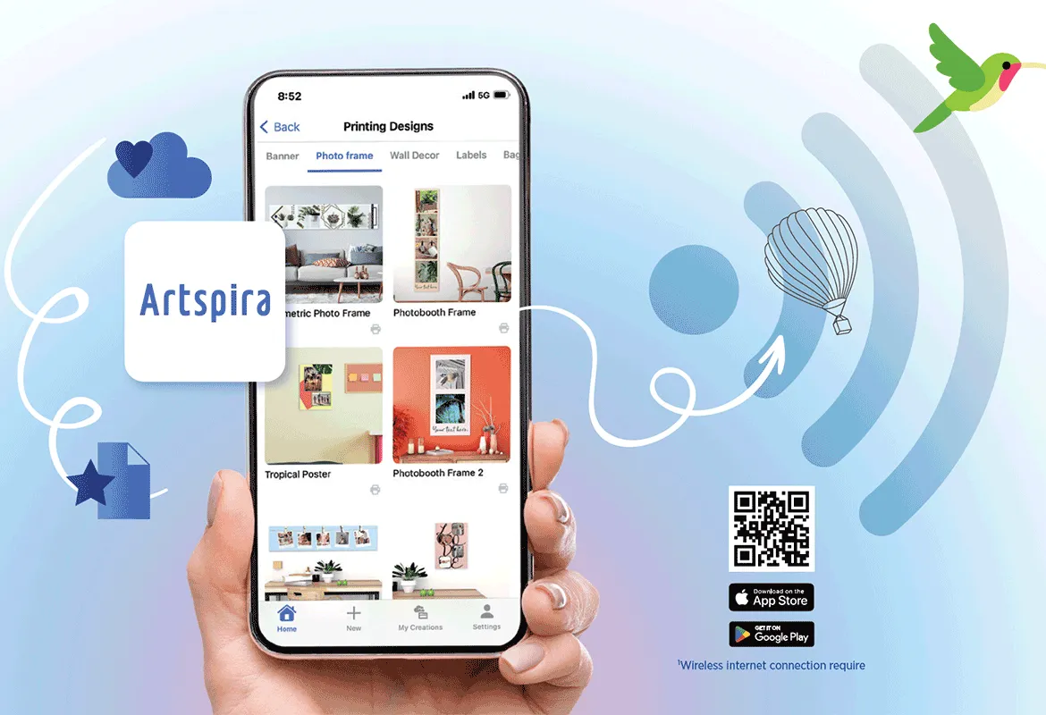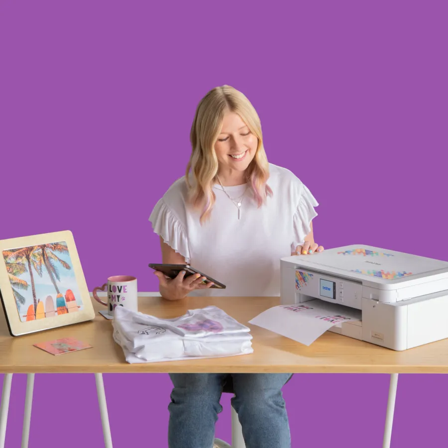 Que vous souhaitiez lancer une nouvelle activité, ajouter une compétence à votre micro-entreprise ou tout simplement explorer l’univers de la personnalisation, l’imprimante Brother SP-1 est votre partenaire idéal. Connectez-la à l’application Artspira* pour accéder à une vaste bibliothèque de motifs d’impression, d’outils d’édition et bien plus encore.