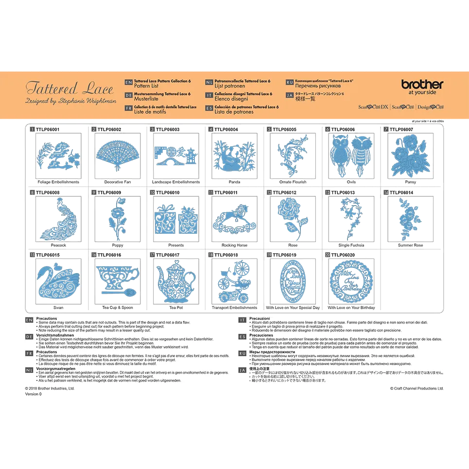 Faites passer votre créativité à un niveau supérieur lors de vos prochains projets de découpe et d’artisanat grâce à la collection 6 de motifs en dentelle CATTLP06 de Brother, conçue spécialement pour votre machine ScanNCut. L’artisane passionnée Stephanie Weightman a créé cette collection de fichiers de découpe qui comprend des motifs élégants et sophistiqués inspirés de l’époque romantique anglaise comme une rose d’été, un hibou, un éventail, un cygne et bien plus encore. Découvrez ces motifs uniques dès maintenant et ajoutez une touche supplémentaire de créativité à vos projets de bricolage en papier, d’artisanat, de couture et autres!