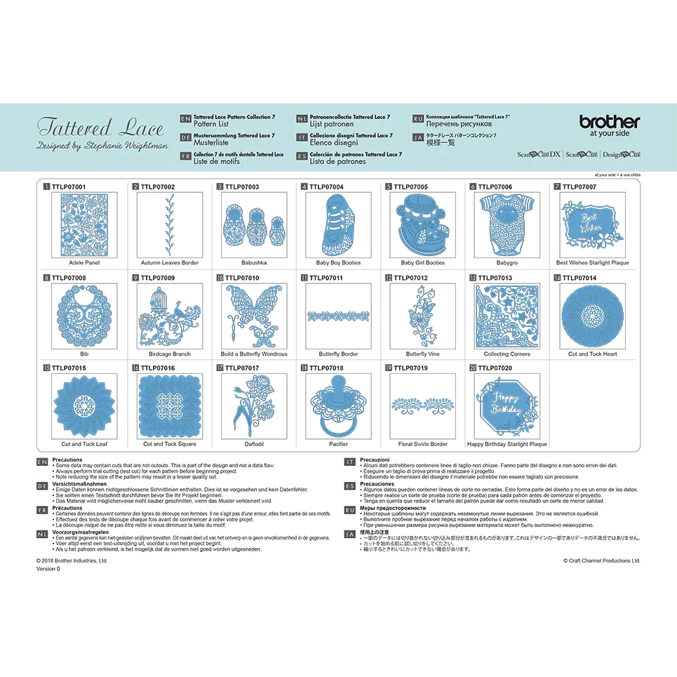 Faites passer votre créativité à un niveau supérieur lors de vos prochains projets de découpe et d artisanat grâce à la collection 7 de motifs en dentelle CATTLP07 de Brother, conçue spécialement pour votre machine ScanNCut.