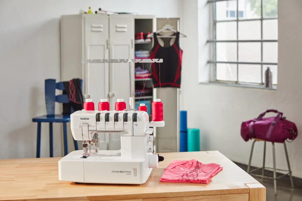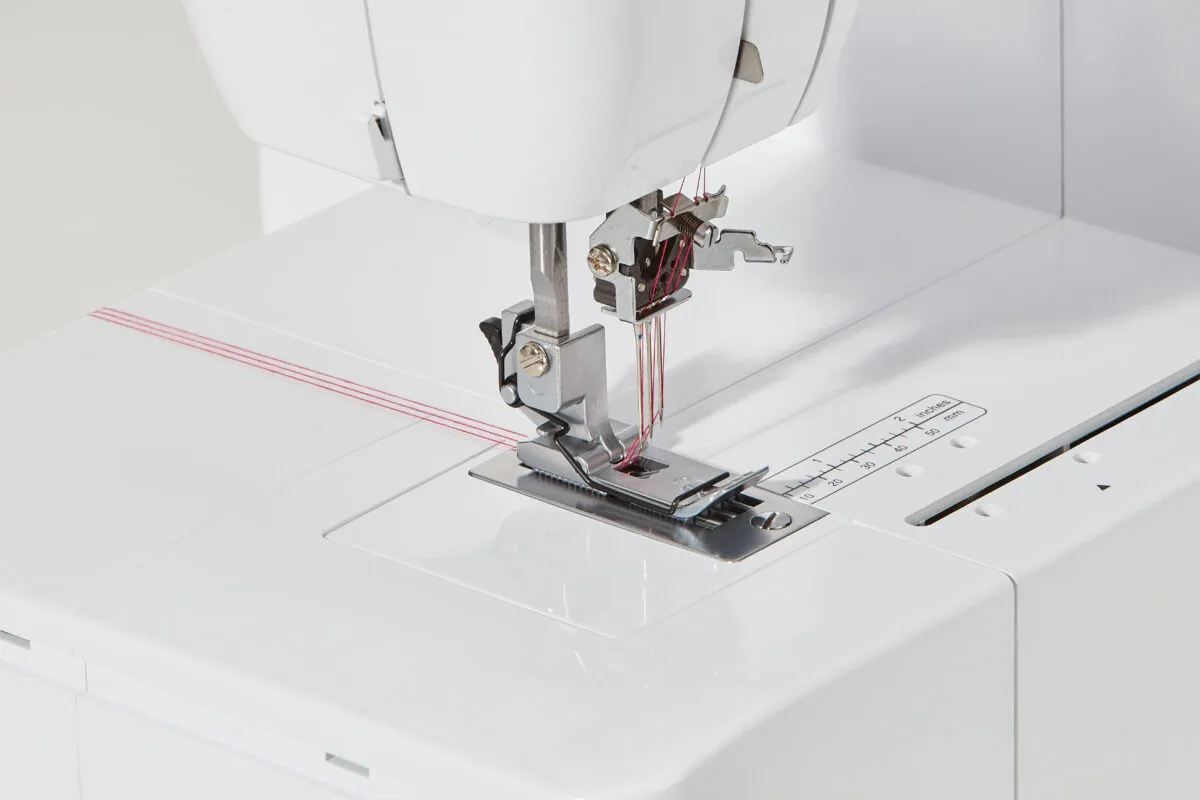 2 aiguilles, 3 fils. Parfait pour les ourlets, les surpiqûres, les points décoratifs sur T-shirts et tricots.