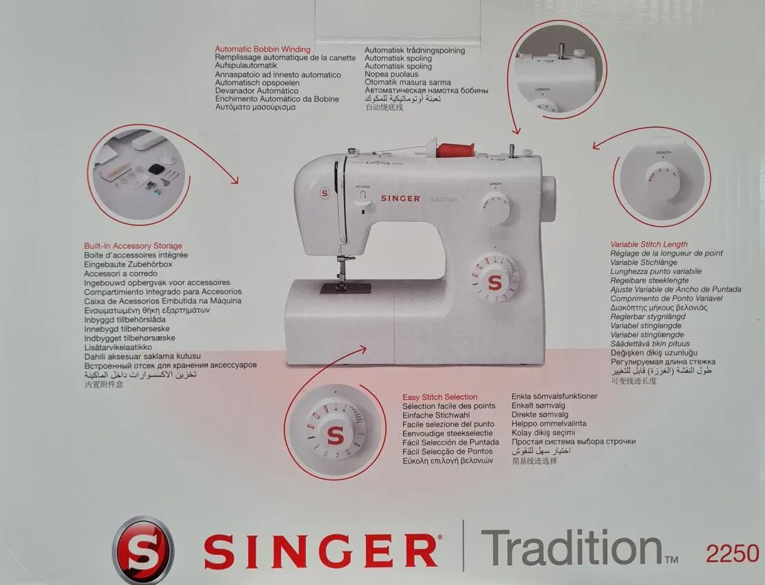 Avec ses performances fiables, la Singer Tradition 2250 se distingue par ses 10 programmes de couture, son réglage de la longueur des points, et un changement rapide du pied presseur en quelques secondes. La sélection de points est simple et les boutonnières sont précises, ce qui en fait une machine complète, accompagnée de nombreux accessoires pour répondre à tous vos besoins.